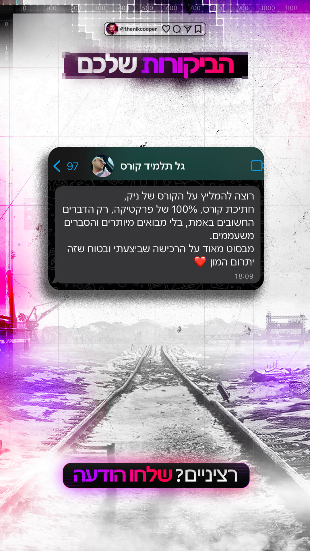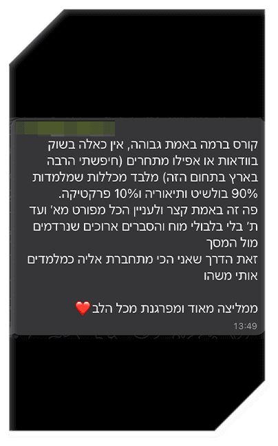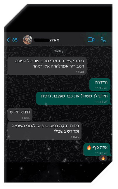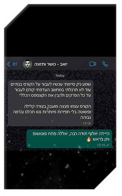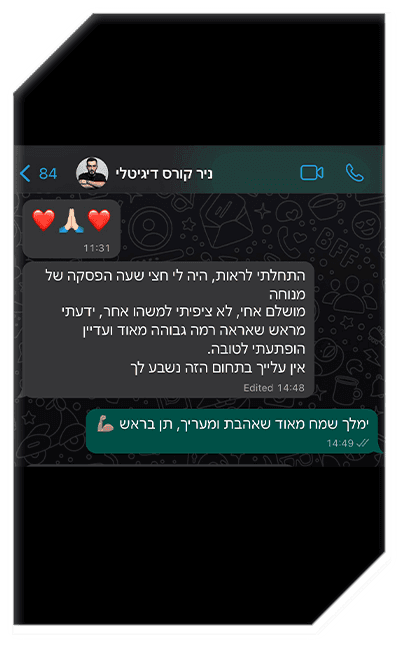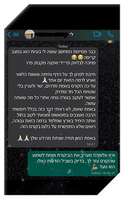 בנוסף לקורס – אתם נכנסים גם לקבוצת הוואטסאפ של הקהילה.