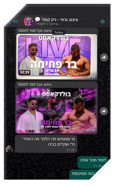 אני בעצמי שולח לשם עבודות מדי פעם – ובנוסף, חלק מהחברים בקבוצה הם בעלי עסקים ונותני שירותים שמחפשים מעצבים גרפיים בדיוק כמוכם – והם מחפשים קודם כל בתוך הקבוצה.