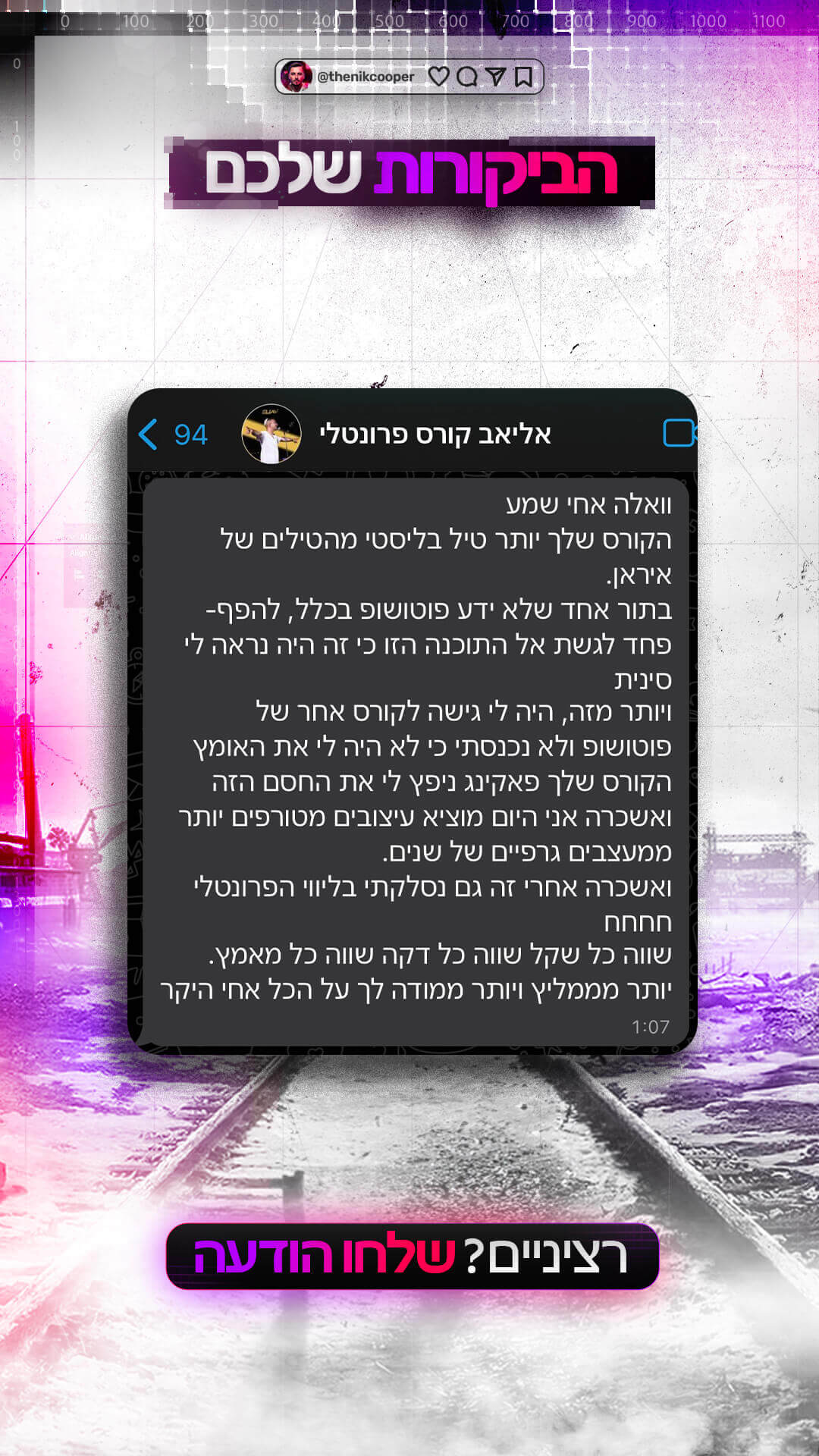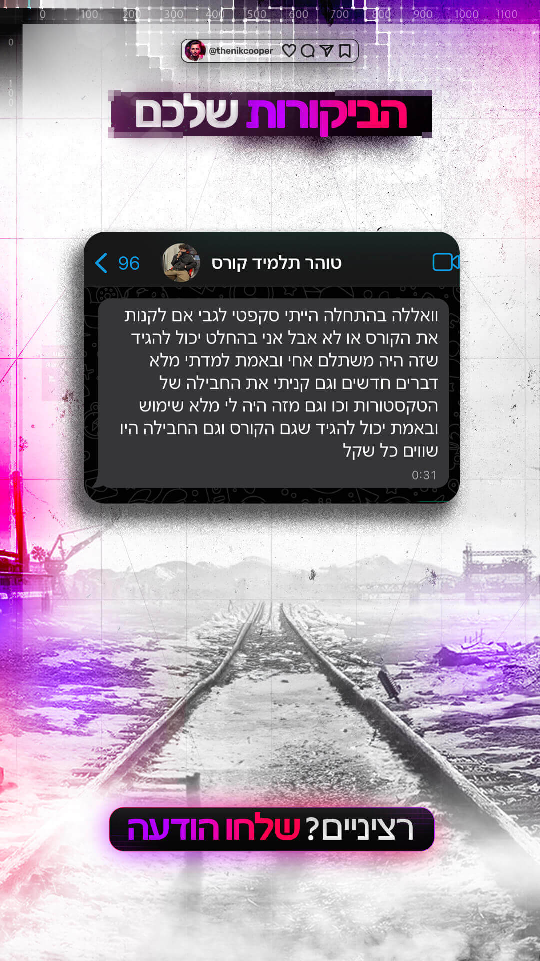 מוזמנים לעבור על כל הפרטים, השתדלתי לעשות את זה קצר וקולע, אם בכל זאת יש לכם שאלות (גם אחרי סקשן השאלות תשובות), אפשר לדבר, ובכיף!